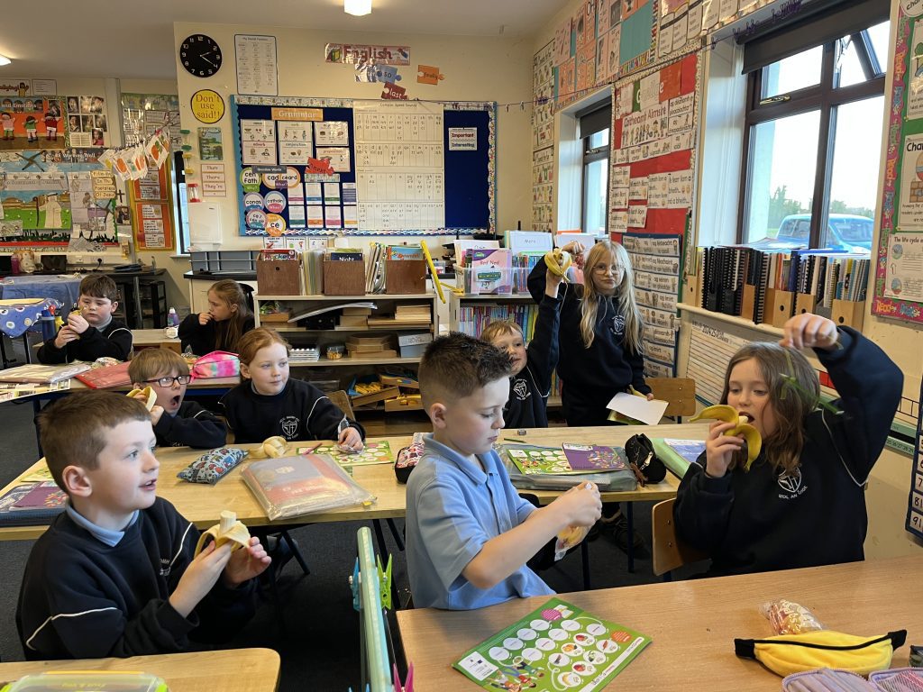 In January the whole school completed the Food Dudes program. The children were given a portion of fruit and vegetables to taste daily. There were prizes along the way for good effort. Each class did healthy eating lessons as part of SPHE. It was a great way to start the year in a healthy way.